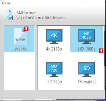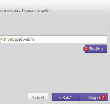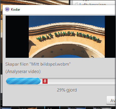 Du sparar ditt bildspel som videofil i formatet WebM. Det är ett videoformat som kan spelas upp i alla uppspelningsprogram och laddas upp på nätet som YouTube-video.