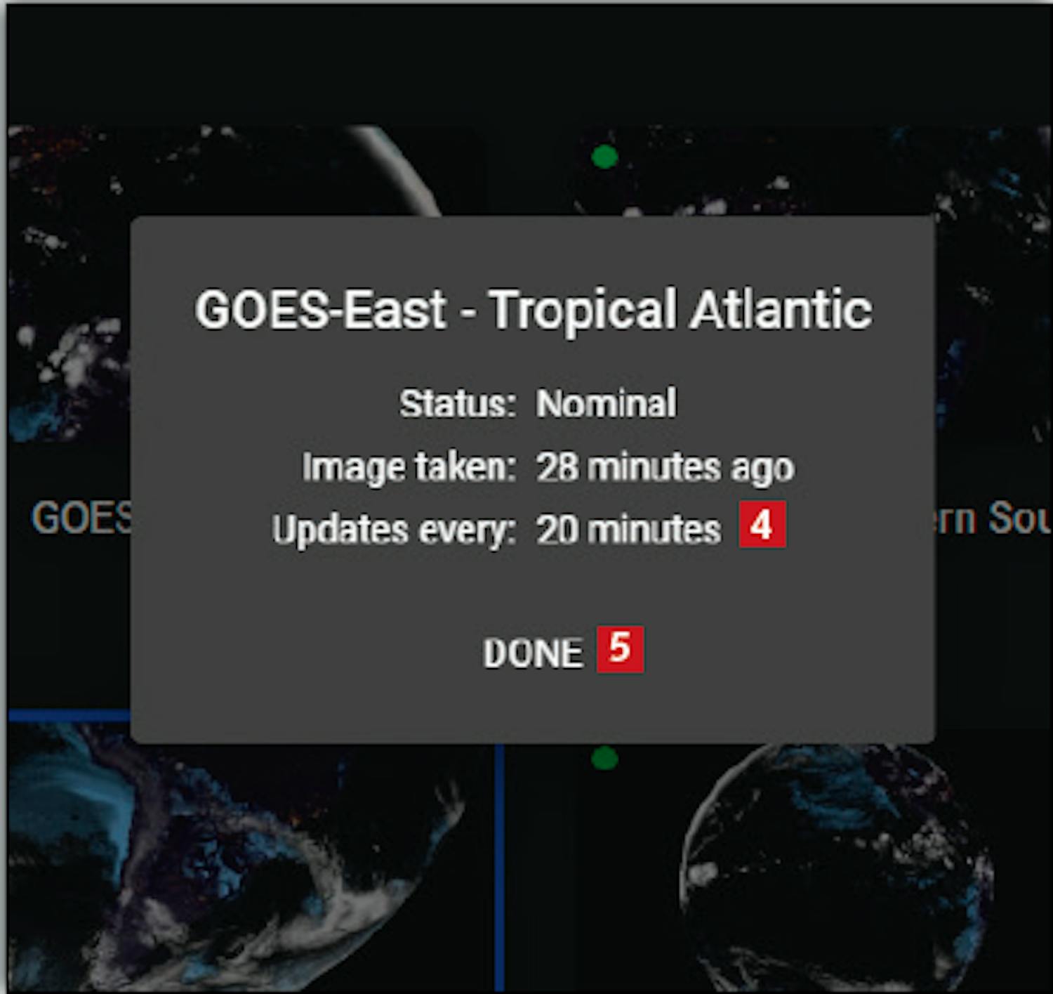 Det finns 12 olika vyer från fem olika satelliter att välja mellan. När du har valt ett motiv byts bilden automatiskt ut på skrivbordet i Windows i ett fast intervall, så att du kan se väderfenomenenen röra sig över världsdelen.