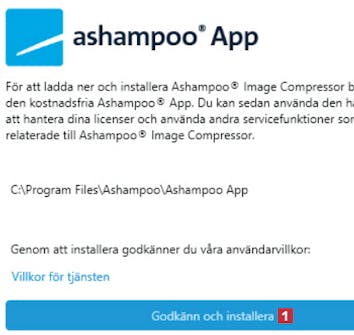 Hämta programmet från webbplatsen och starta installationen. Först installeras Ashampoos nya programportal Ashampoo App. Klicka på Acceptera och installera 1.