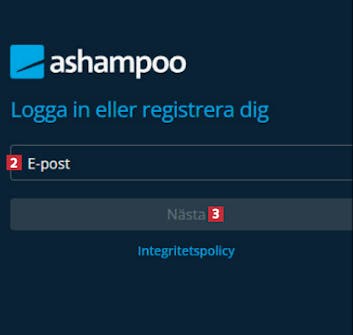 Om du redan är registrerad hos Ashampoo skriver du in ditt lösenord 4. Klicka på Logga in 5. Är du inte registrerad får du ett mejl med en länk för att skapa ett konto.