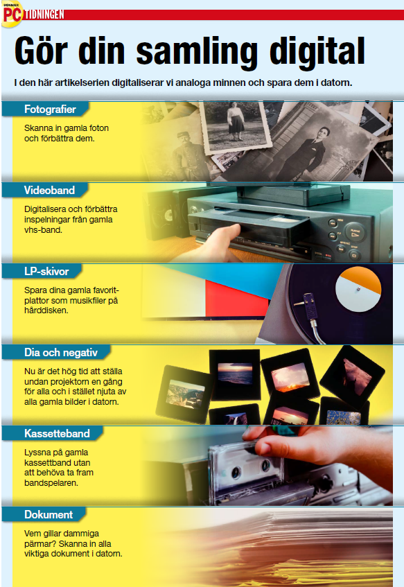 Den kompletta e-boken "Gör din samling digital" är på 36 sidor och med den i handen och din PC kan du enkelt digitalisera hela familjens samling av analoga minnen.