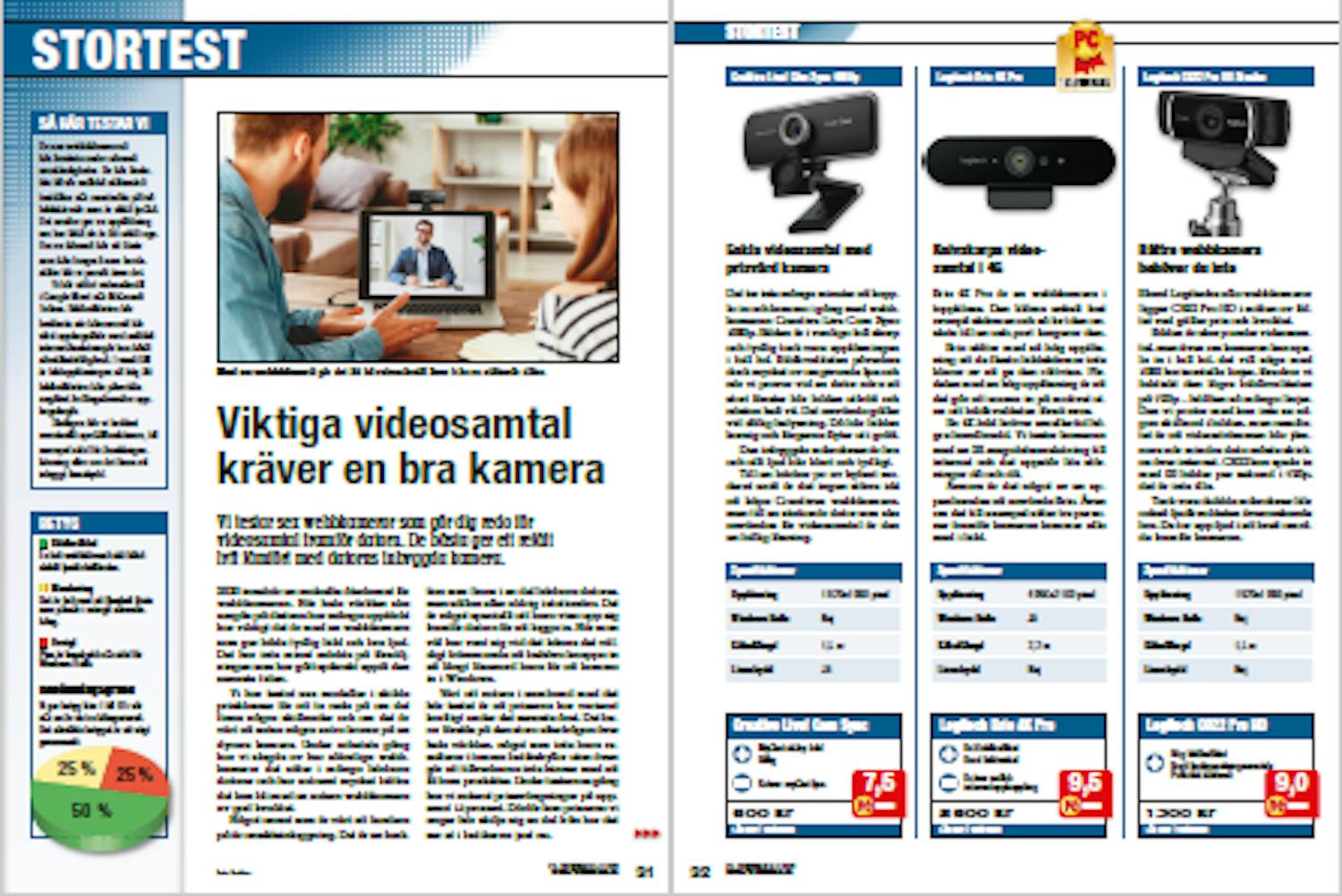 Vi har testat sex modeller i skilda prisklasser för att ta reda på om det finns några skillnader och om det är värt att satsa några extra kronor på en dyrare kamera. Under arbetets gång har vi slagits av hur eländiga webbkameror det sitter i många bärbara datorer och hur extremt mycket bättre det kan bli med en extern webbkamera av god kvalitet.