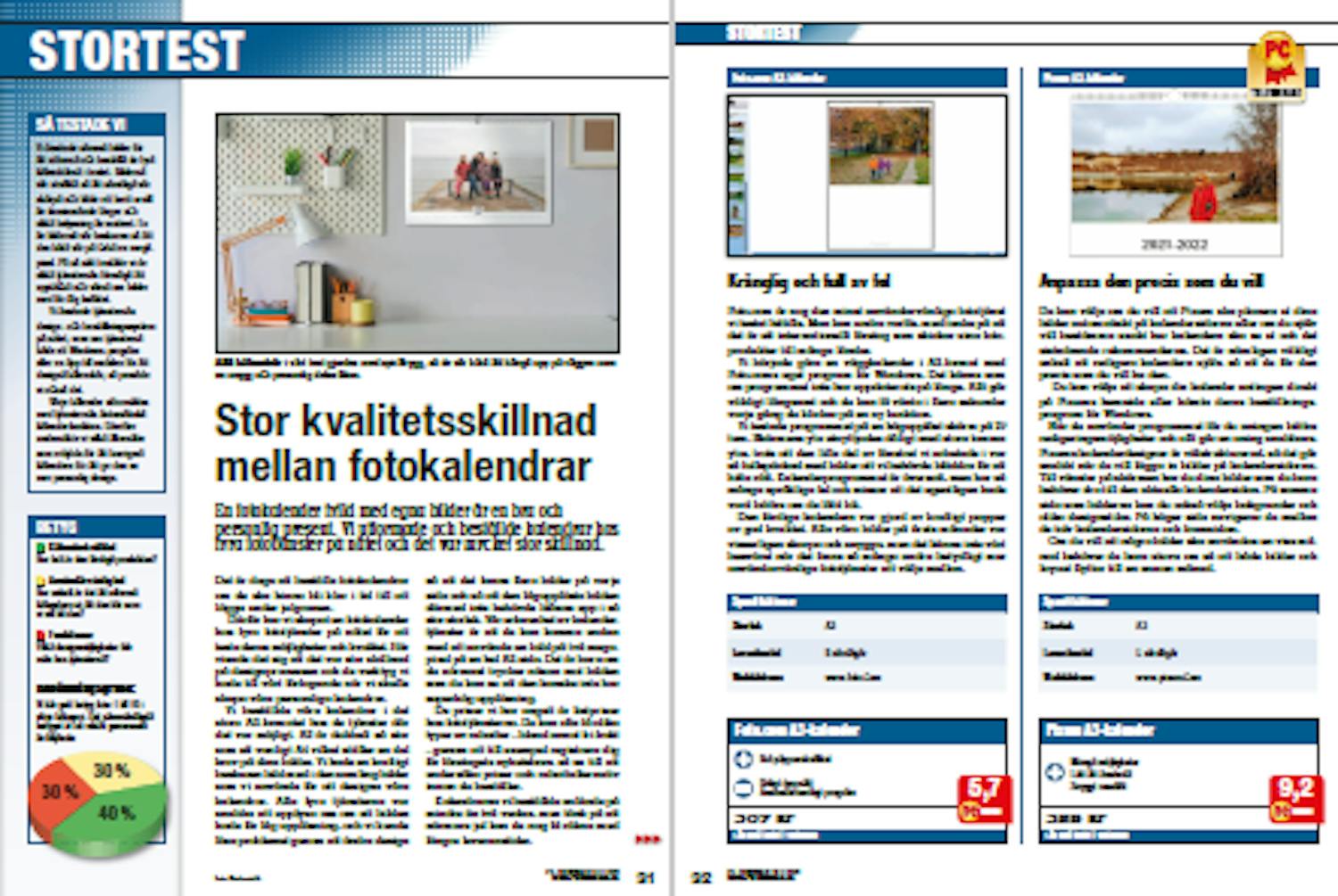 Vår erfarenhet av kalendertjänster är att du kan komma undan med att använda en bild på två megapixel på en hel A3-sida. Det är bara om du närmast trycker näsan mot bilden som du kan se att den kanske inte har superhög upplösning. De priser vi har angett är listpriser hos fototjänsterna. Du kan ofta få olika typer av rabatter – bland annat fri frakt – genom att till exempel registrera dig för företagets nyhetsbrev, så se till att undersöka priser och rabattalternativ innan du beställer. Kalendrarna vi beställde anlände på mindre än två veckor, men tänk på att närmare jul kan du nog få räkna med längre leveranstider.