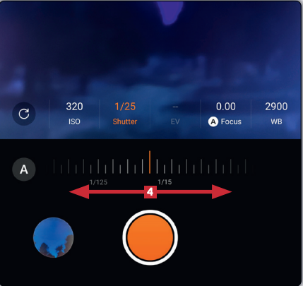 Nu ser du ett antal nya alternativ. Tryck till exempel på Shutter 3 där du kan justera slutartiden.