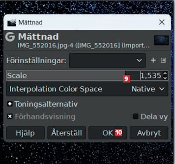 Klicka på reglaget där det står Scale, håll musknappen intryckt och dra reglaget åt höger ungefär till den här punkten 9. Klicka på OK 10.