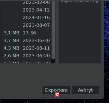 Ge bilden ett namn, välj en plats på din dator där den ska sparas, och klicka på knappen Exportera 17.