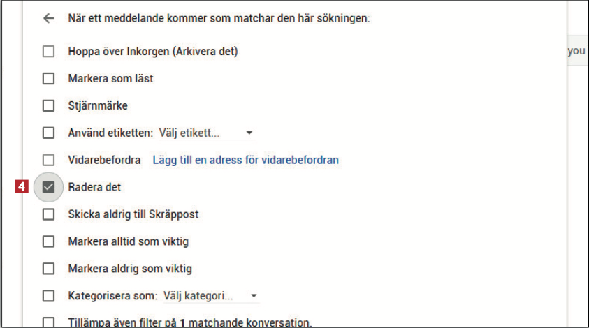 Bocka för Radera det 4 och klicka på knappen Skapa filter.