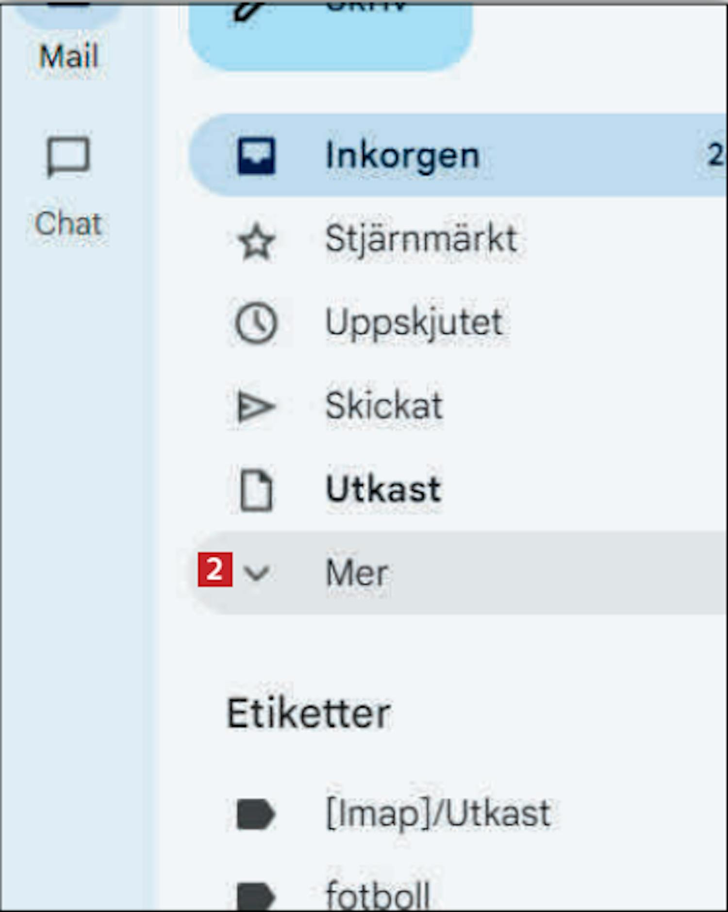 För att hitta de arkiverade mejlen igen, klicka på rubriken Mer 2 i menyn ute till vänster.