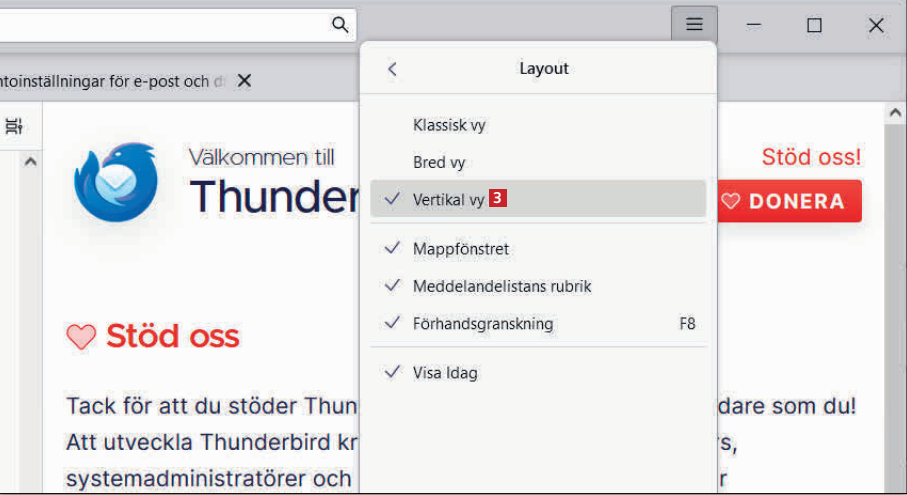Jag använder det fantastiska mejlprogrammet Thunderbird på min dator, men det irriterar mig att ett öppnat mejl visas längst ner i fönstret (under inkorgen). Det skulle vara mycket bättre om innehållet i mejlet visades bredvid inkorgen.
