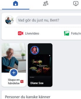 Besök facebook.com. Klicka på Skapa en händelse 1. Nu får du välja om din berättelse ska bestå av text, bilder eller en video.