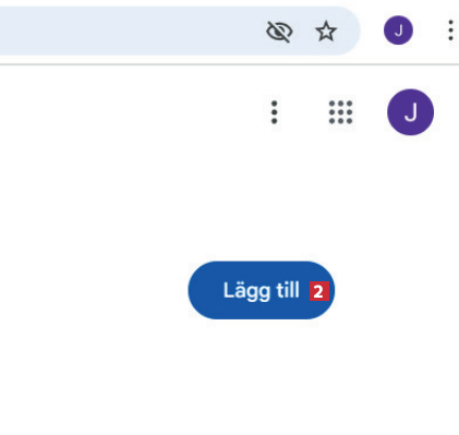 Du kommer nu till tilläggsbutiken för din webbläsare. I Chrome klickar du på Lägg till 2 följt av Lägg till tillägg.