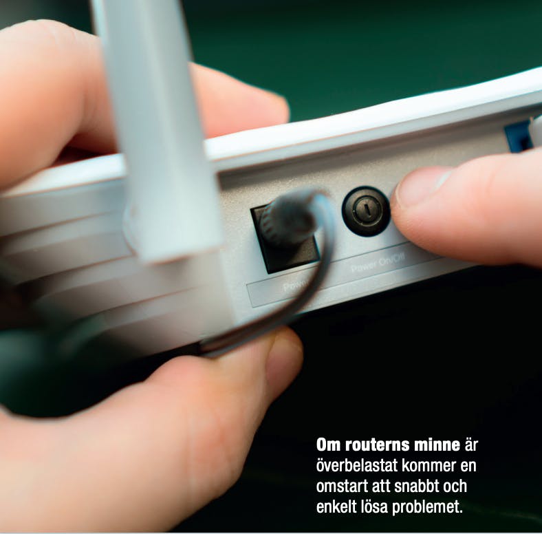 Genom att använda en kabel kan du ta reda på om eventuella anslutningsproblem orsakas av din trådlösa utrustningen. Om routerns minne är överbelastat kommer en omstart att snabbt och enkelt lösa problemet.