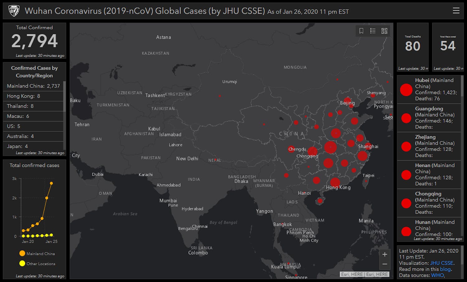 Webbsidan uppdateras minut för minut med information om spridning, antalet smittade och hur många som har avlidit på grund av viruset.