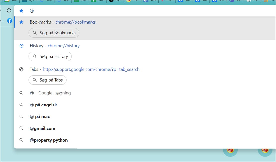 Genom att skriva in ett @ före din sökning i Google får du möjligheten att välja om du vill söka i dina öppna flikar (@tabs), dina bokmärken (@bookmarks) eller i din historik – alltså sidor som du har öppnat tidigare (@history).