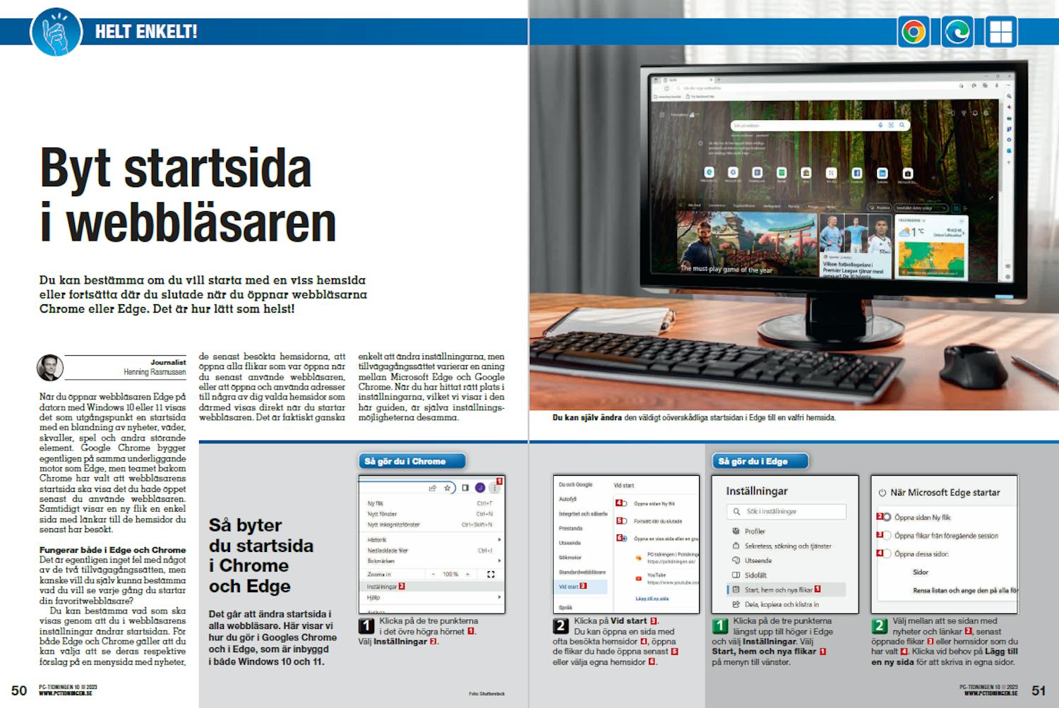 När du öppnar webbläsaren Edge på datorn med Windows 10 eller 11 visas det som utgångspunkt en startsida med en blandning av nyheter, väder, skvaller, spel och andra störande element. Google Chrome bygger egentligen på samma underliggande motor som Edge, men teamet bakom Chrome har valt att webbläsarens startsida ska visa det du hade öppet senast du använde webbläsaren. Samtidigt visar en ny flik en enkel sida med länkar till de hemsidor du senast har besökt.