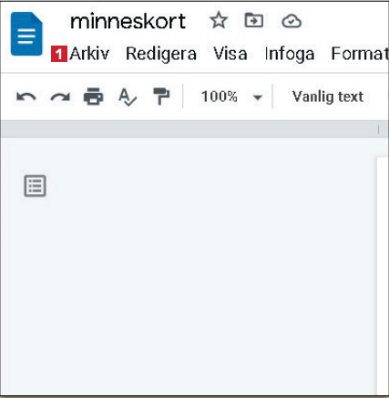 Öppna dokumentet som du vill hitta en tidigare version av. Klicka på Arkiv 1 i verktygsfältet.