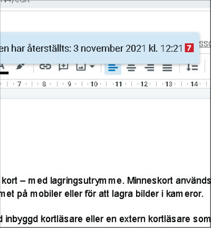 Du kommer nu att kunna se en liten ruta 7 längst upp där det framgår att det tidigare dokumentet har återställts.