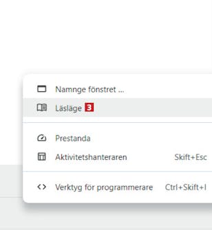 Det öppnar läsläget på höger sida av Chrome. Du kan dra i kanten 4 på läsfönstret för att göra det bredare.