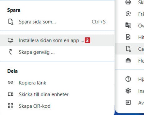 Öppna Chrome och gå till den sida du vill göra till en app. Klicka på de tre punkterna i det övre högra hörnet 1.