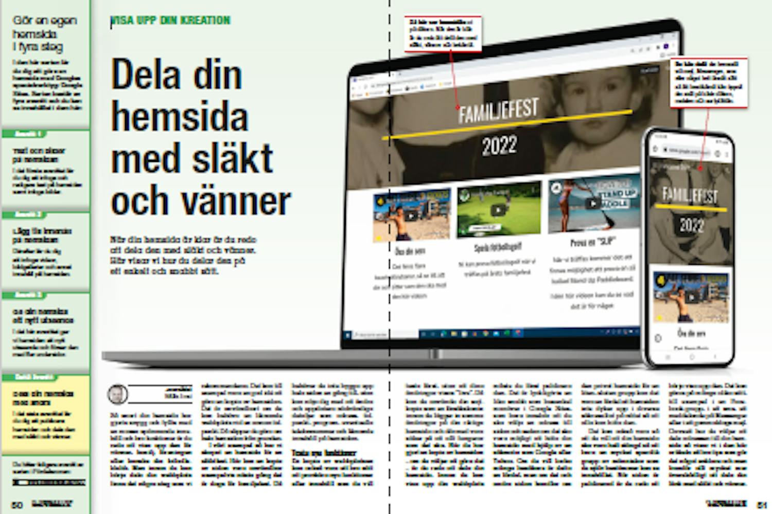 Med Google Sites är det så enkelt att skapa en hemsida att du på kort tid kan skapa flera stycken. En med familjens olika önskelistor, en med information om den årliga familjefesten, en hemsida med bilder från familjens fotoalbum och en hemsida för din förening. Möjligheterna är många, men det grundläggande behovet är detsamma: Du har innehåll – antingen text, bilder, video eller liknande – som du gärna vill dela med dig av. Helst på en sluten plattform som du själv kan kontrollera. Den möjligheten får du med Google Sites. Det viktiga är att hemsidan har ett tydligt syfte.