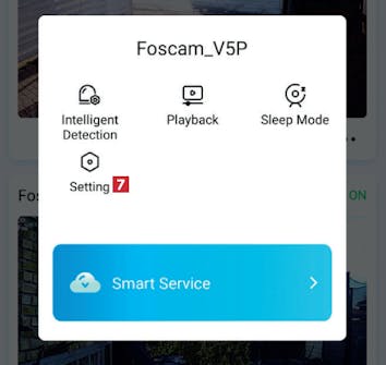 Om din enhet är en appstyrd nätverkskamera klickar du vanligtvis på de tre punkterna under kamerabilden 6. Här handlar det om en kamera från Foscam.