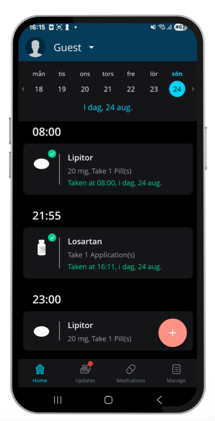 I gratisversionen kan du ange två olika typer av mediciner, vilket är tillräckligt för många människor. Om du behöver fler kan du uppgradera till premium för 45 kronor per månad.