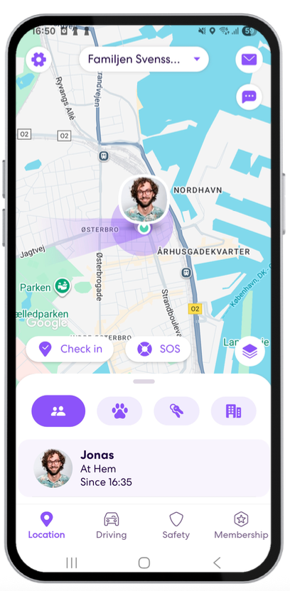 När ni sedan går med i samma ”cirkel” kan ni se varandras positioner på en karta. Härifrån kan ni skicka meddelanden till varandra, och du kan skicka ett SOS till alla i din cirkel och dela din position om du känner dig otrygg.