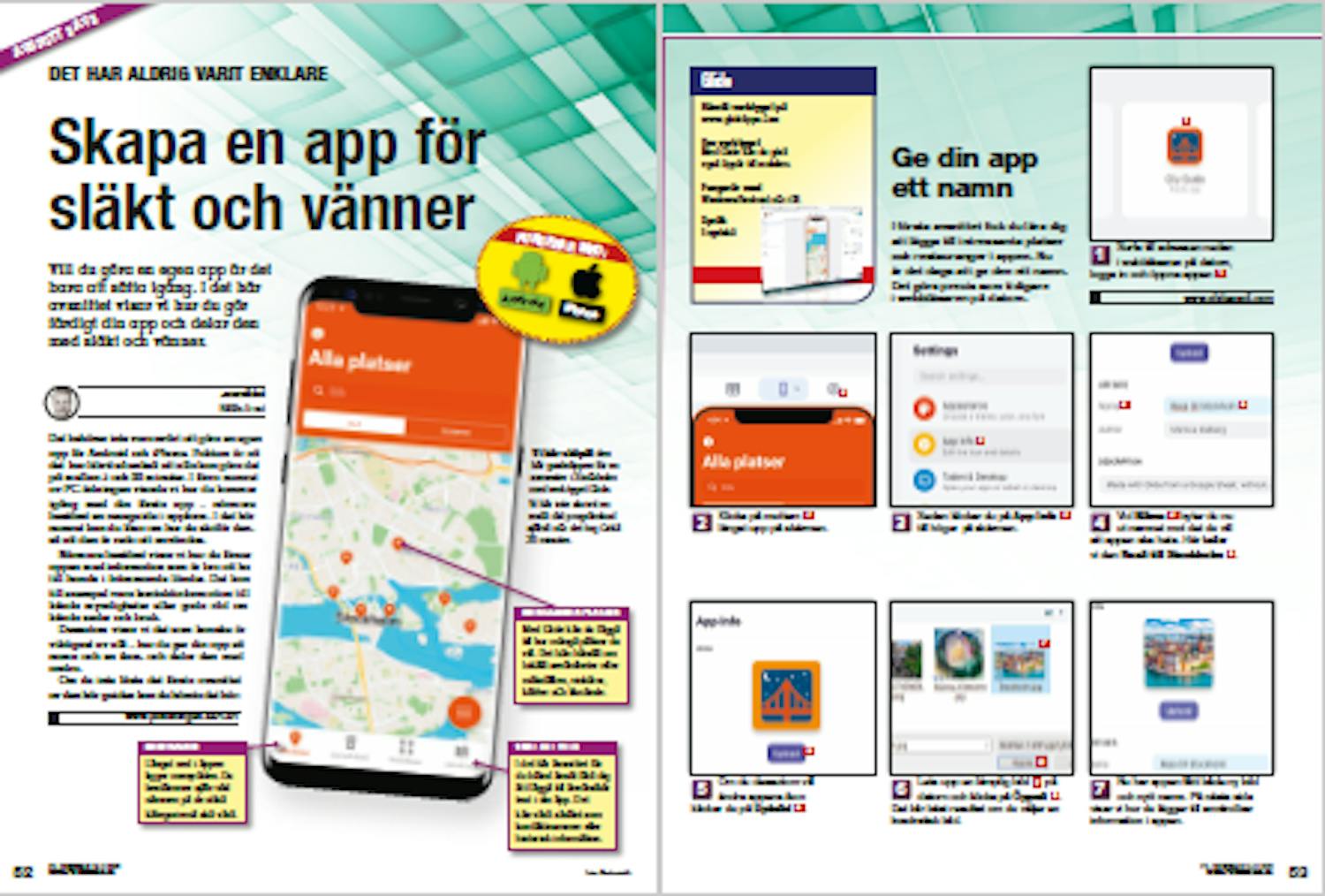 Antingen helt utan eller med så lite kodning som möjligt. Ett av dessa verktyg är Glide, som finns på internet. Med verktygets hjälp kan du skapa en helt egen app för Android och iOS – och det krävs faktiskt inte en enda rad kod. Det enda som krävs är mellan fem och trettio minuter, dvs. tiden det tar att lära känna verktyget. Sedan kan du skapa en uppsjö av användbara appar, till exempel en översikt över medlemmarna i en förening, en app för egna podcasts eller som i vår artikel en reseapp inför en resa till Stockholm.