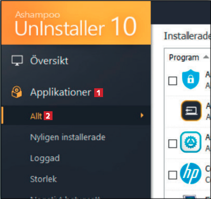 Kärnfunktionen i Ashampoo Uninstaller 10 är att hjälpa dig att effektivt ta bort program. Nu tänker vi oss att du har bestämt dig för att ta bort utvalda program från datorn.