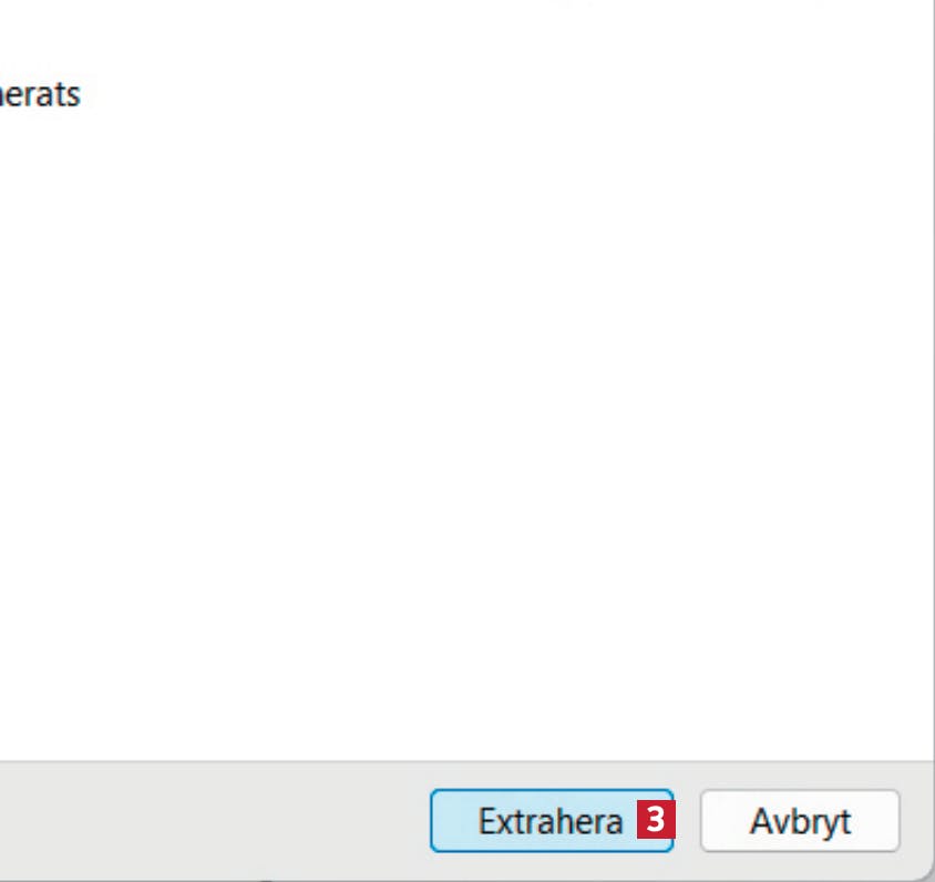 Det startar en liten guide där du behöver klicka på Extrahera 3. Då sparas de uppackade filerna i en mapp med samma namn som den zip-fil du extraherar.