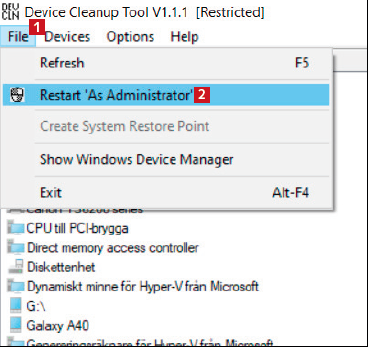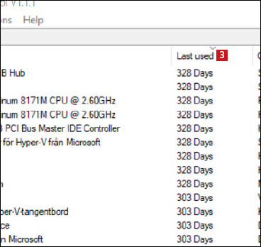 Device Cleanup Tool visar all utrustning som är registrerad