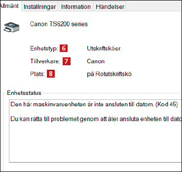 i Windows men inte är ansluten till datorn. Det innebär att