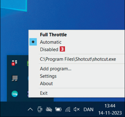 Om du vill välja när Full Throttle Override ska ge extra processorkraft till ett program kan du enkelt aktivera och avaktivera Full Throttle Override när det passar dig.
