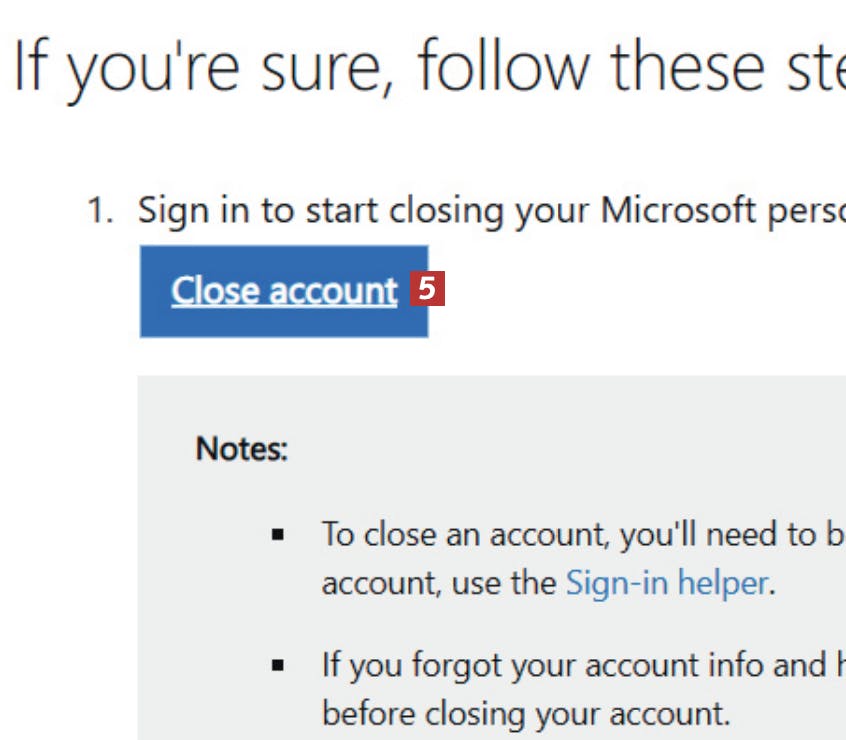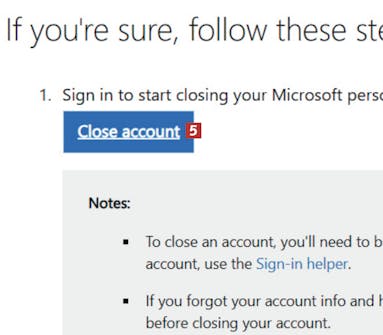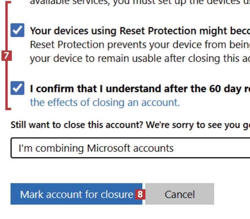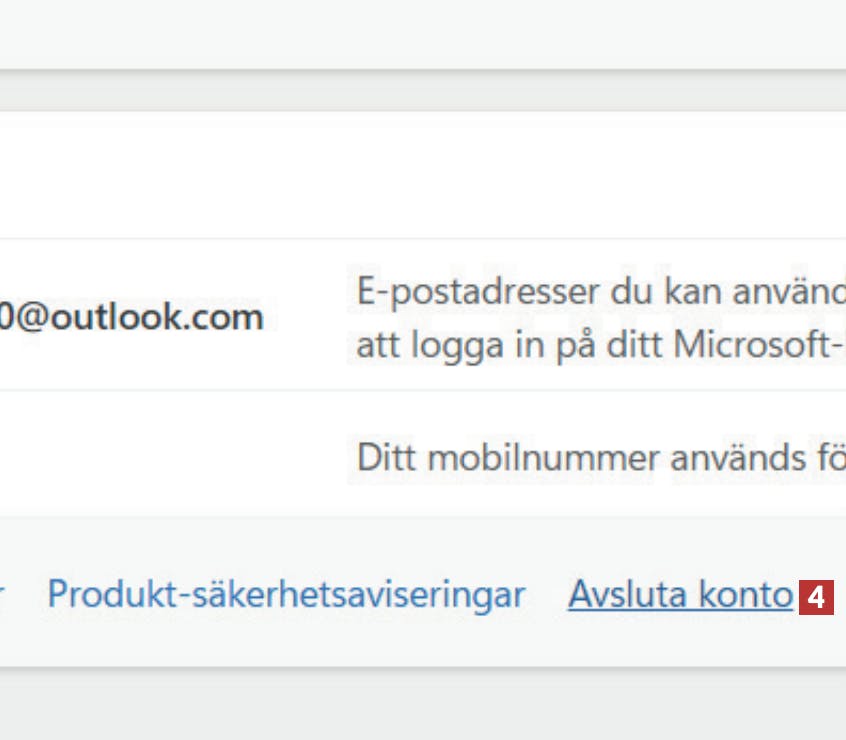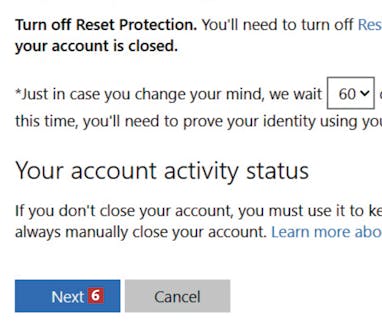 Du får nu en varning om att dina uppgifter kommer att raderas när kontot avslutas. Klicka på Next 6.