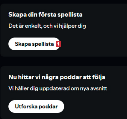 Börja med att öppna Spotify och logga in. Längst till vänster i programmet klickar du på knappen Skapa spellista 1.