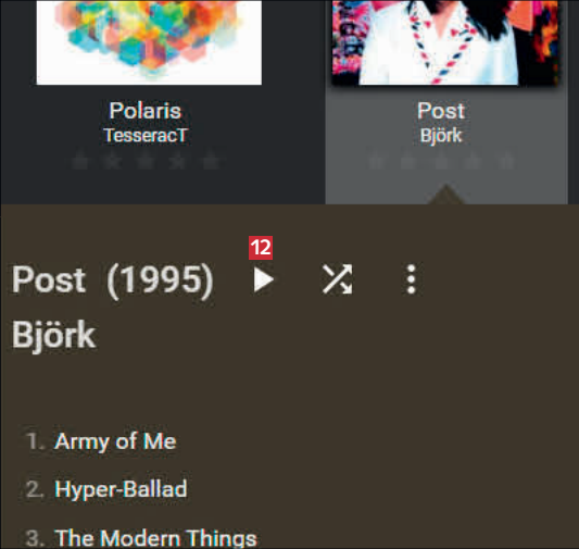 Gå in i din samling genom att klicka på knappen Musik i menyn till vänster. Dubbelklicka på ett album som du vill lägga till i din spellista 1.