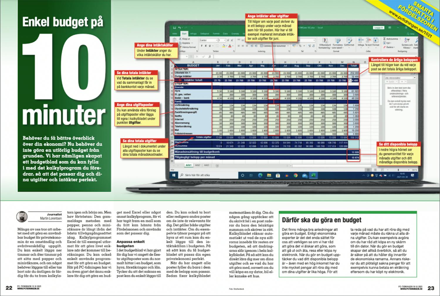 Många av oss tror att arbetet med att göra en användbar budget för privatekonomin är en omständlig och svåröverskådlig uppgift. Du kan enkelt lägga ner timmar och åter timmar på att sitta med papper och miniräknare, och om något behöver läggas till eller tas bort när du äntligen är färdig får du ta fram kalkylatorn igen och börja om. Men hav förtröstan: Den gammaldags metoden med papper, penna och miniräknare är långt ifrån det bästa tillvägagångssättet idag. Kalkylprogrammet Excel är till exempel utformat för att göra livet enklare när det kommer till beräkningar. Du kan också enkelt använda programmet för att göra en budget. Här på PC-tidningen har vi nu även gjort det ännu enklare för dig att göra en budget med Excel eller något annat kalkylprogram, för vi har tagit fram en mall som du fritt kan hämta från Fördelszonen och använda som det passar dig.