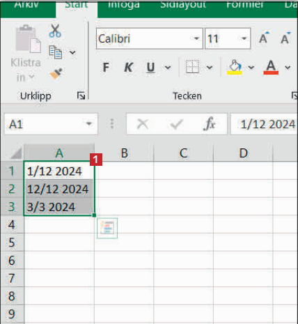 Jeg oplever noget mærkeligt i Excel: I et regneark har jeg nogle datoer. De er i tekstformat, men jeg vil gerne ændre dem til datoformat. Det får jeg bare ikke lov til. Hvis jeg højreklikker og vælger Formater, står mine data stadig i almindeligt tekstformat. Hvordan gør jeg så?