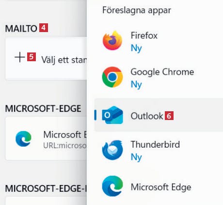Mejllänkar ska öppnas i Outlook