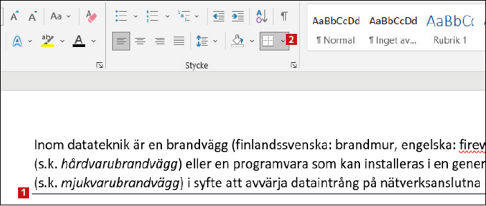 Börja med att öppna Word-dokumentet. Den horisontella linjen 1