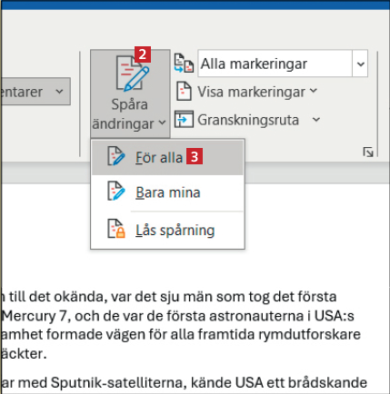Välj Spåra ändringar 2 följt av För alla 3 .