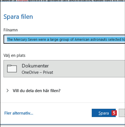 När du är färdig sparar du dokumentet med tangenterna CTRL + S och klickar på Spara 5 .