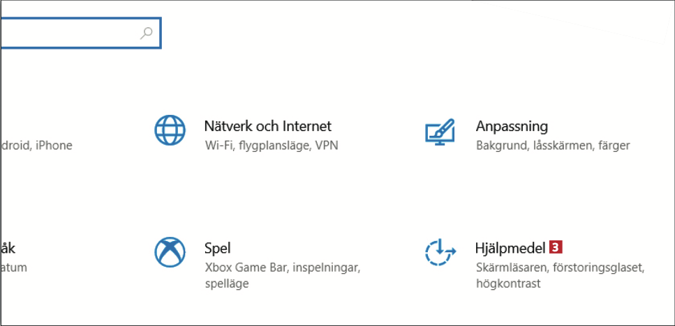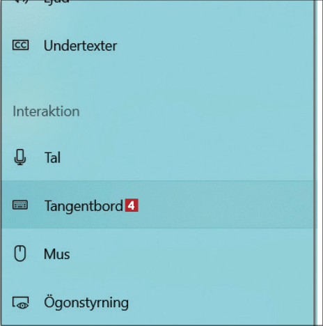 I Windows inställningar väljer du menyalternativet Hjälpmedel 3 .