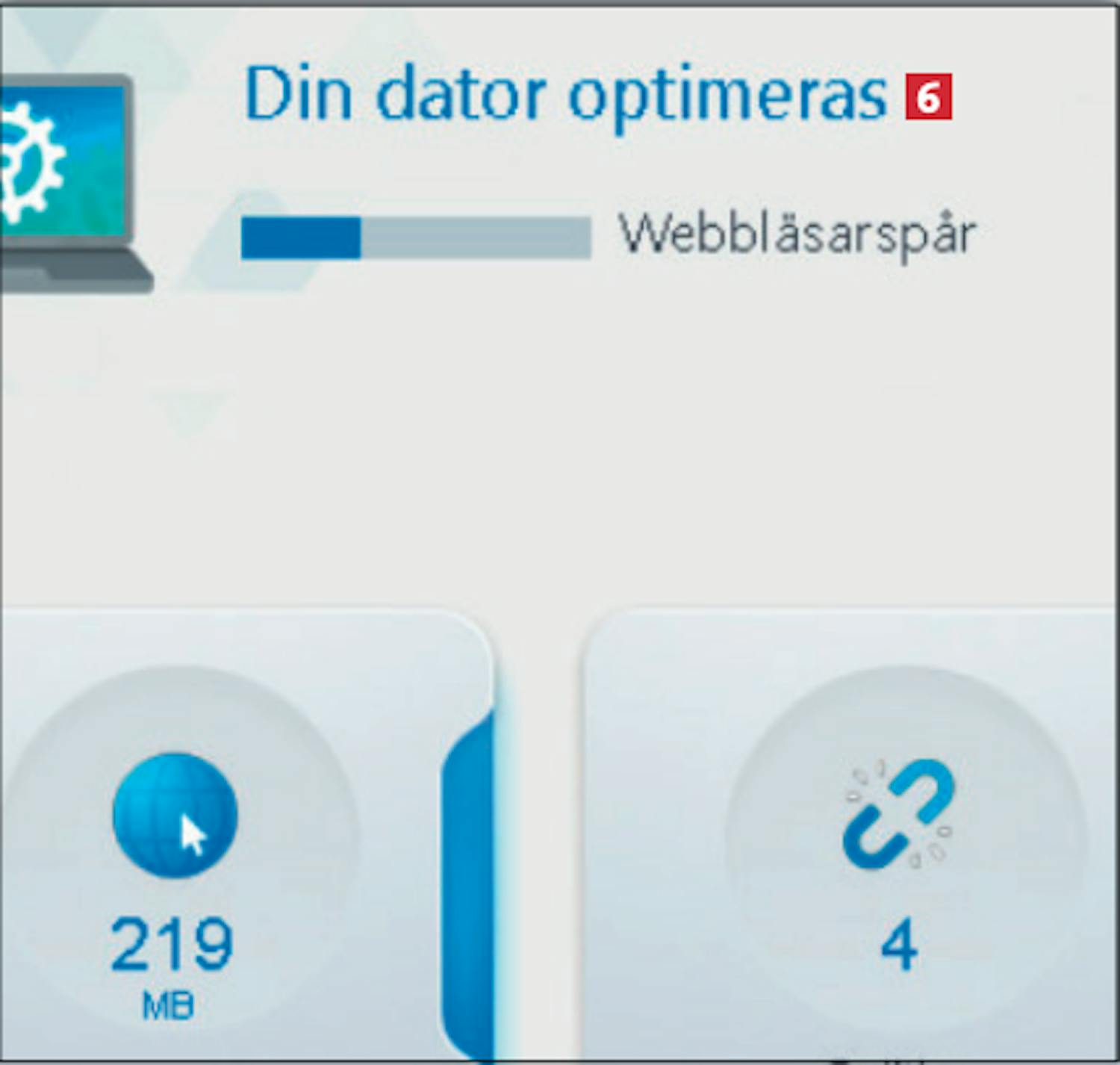 Först visar vi hur du optimerar datorn med några få klick. WinOptimizer undersöker datorn och rättar till de fel och brister som den upptäcker. Vi rekommenderar att du upprepar detta en gång i månaden.