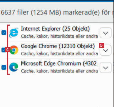 Nu visas data för installerade webbläsare 4. Det går att expandera listan 5 för att se vilken information det handlar om.