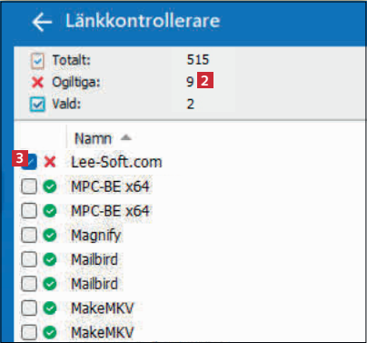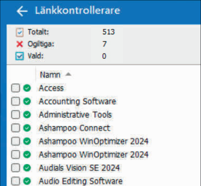 Översikten visar hur många felaktiga genvägar som finns på datorn 2. Bläddra och markera de som har ett rött kryss 3.