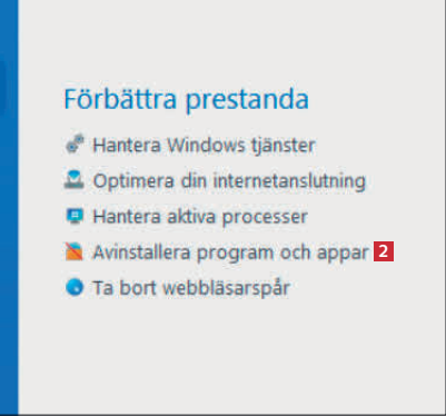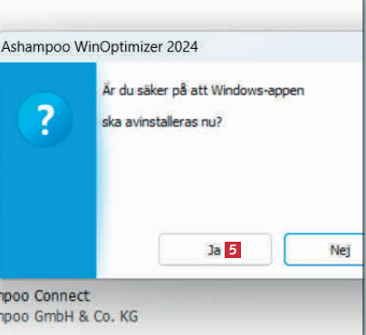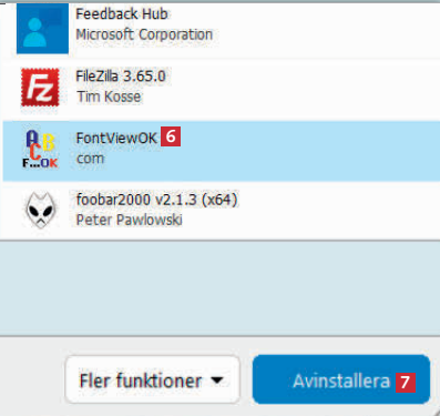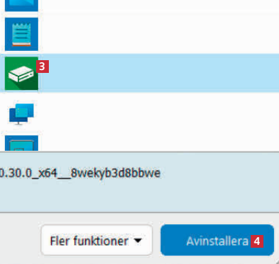 I listan väljer du en app 3 som du inte använder, och klickar på Avinstallera 4. Windows inbyggda appar visas längst upp i översikten.