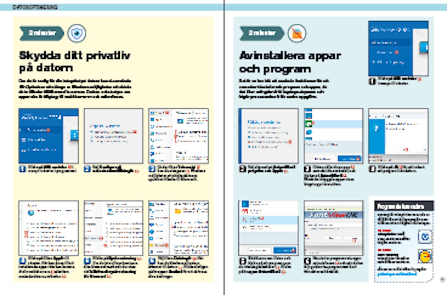 Avinstallera appar och program