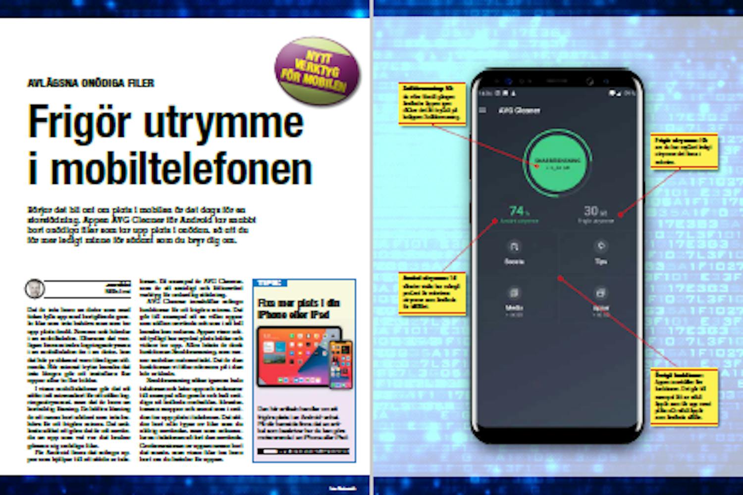 Det är inte bara en dator som med tiden fylls upp med bortglömda gamla filer som inte behövs men som tar upp plats ändå. Samma sak händer i en mobiltelefon. Eftersom det vanligen finns mindre lagringsutrymme i en mobiltelefon än i en dator, kan det här problemet vara tämligen störande. När minnet tryter kanske det inte längre går att installera fler appar eller ta fler bilder.