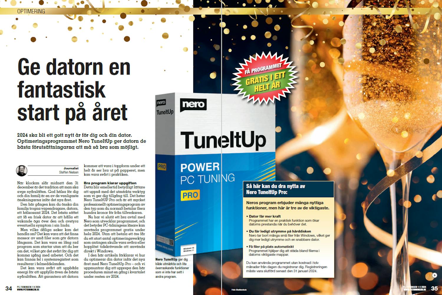 Detta blir emellertid betydligt lättare att uppnå med det utmärkta verktyg som vi ger dig tillgång till. Det heter Nero TuneItUP Pro och är ett mycket professionellt optimeringsprogram av den typ som du normalt betalar flera hundra kronor för från tillverkaren. Nu har vi slutit ett bra avtal med Nero som utvecklar programmet, och det betyder PC-tidningens läsare kan använda programmet gratis under hela 2024.